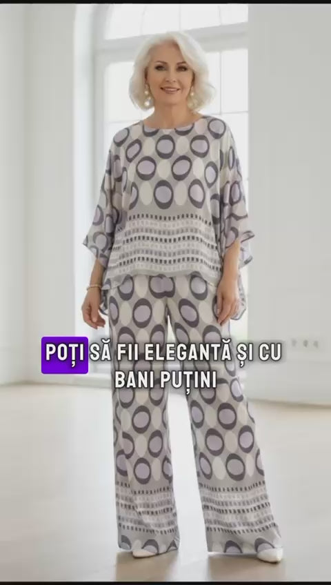 Compleu elegant imprimat, cu pantalon lejer si bluza eleganta lejera, perfect pentru evenimentele speciale din viata ta. Colectia noua nu este inclusa in campania de reduceri!