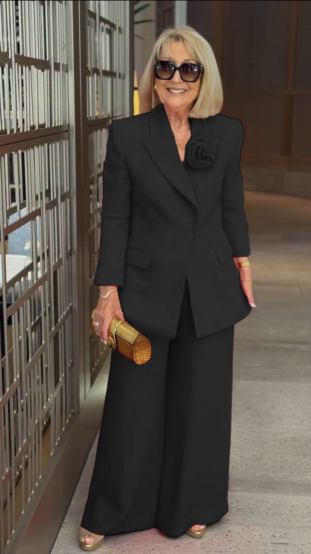 Sacou(CAPTUSIT) cu croială clasică și pantaloni lejeri cu linie amplă – combinația ideală între stil și confort.