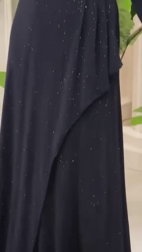 Rochie eleganta din lycra tesuta cu fir stralucitor si accesorii pretioase care marcheaza talia. Este o rochie potrivita pentru orice ocazie.