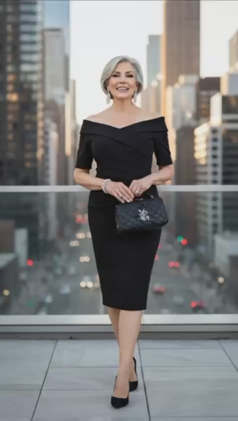 Rochie bodycon cu umerii goi si maneca trei sferturi, perfecta pentru ocaziile speciale din viata ta. Colectia noua nu este inclusa in campania de reduceri!