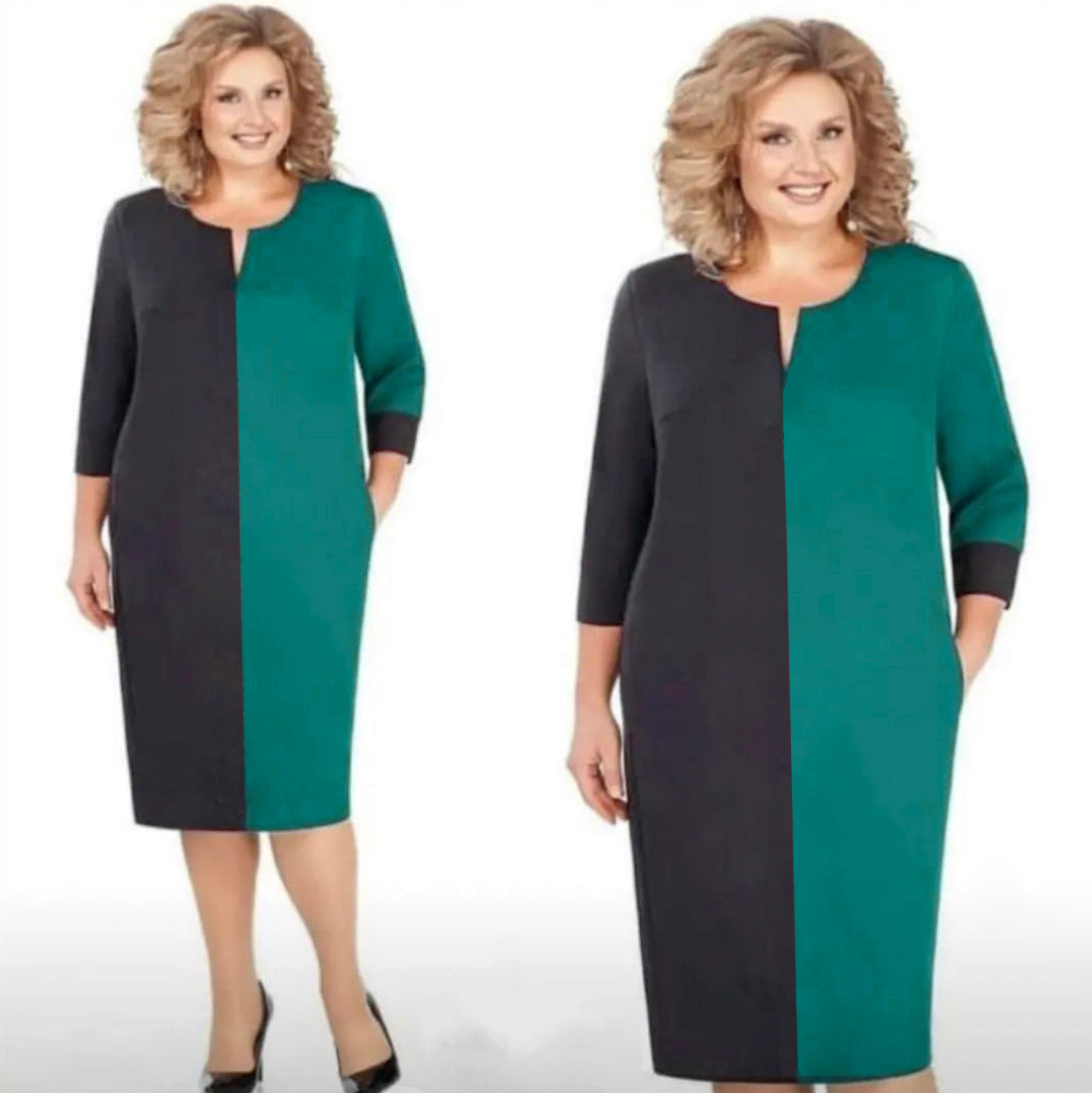Rochie casual, in doua culori, cu maneca trei sferturi.Este perfecta pentru o tinuta office si avantajeaza orice silueta.