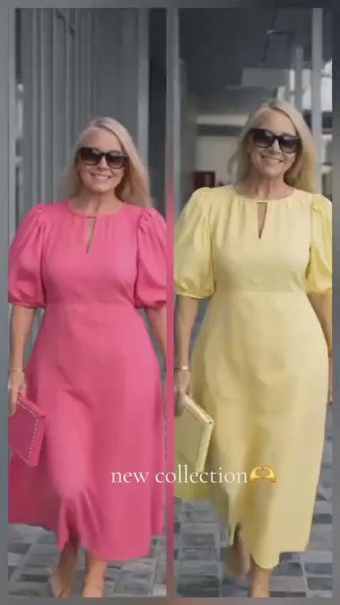 Rochie midi elegantă cu imprimeu buline sau uni, ideală pentru ținute de zi sau evenimente casual-chic. Croiala lejeră evidențiază talia, iar mânecile bufante adaugă un plus de stil și confort. Decolteul discret și materialul fluid oferă o purtare plăcută și un look feminin, modern. Perfectă pentru apariții relaxate, dar rafinate.