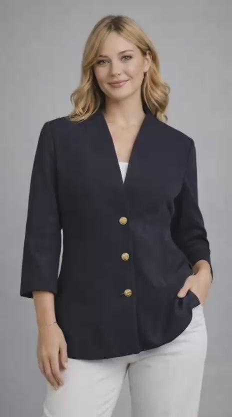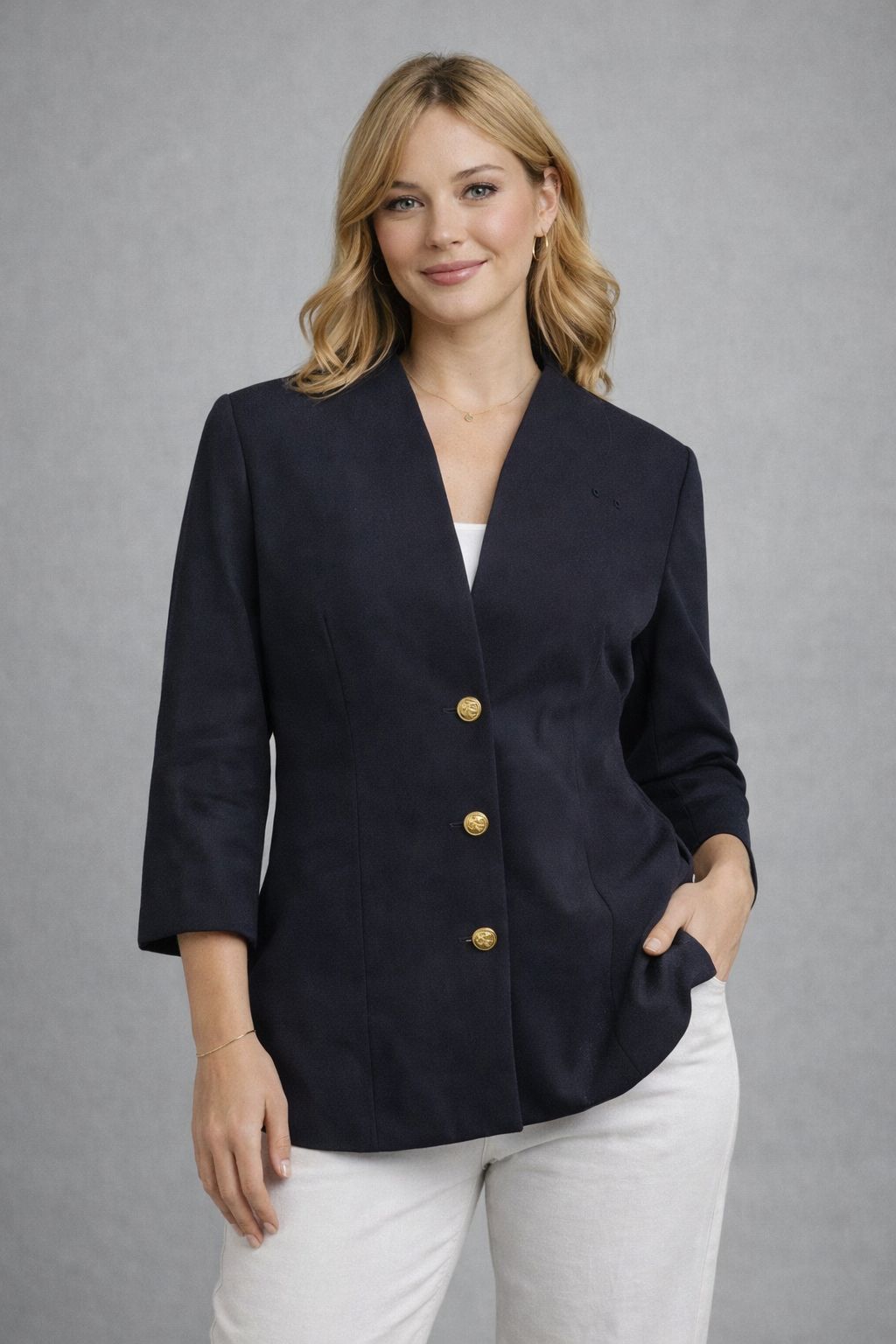 Sacou elegant bleumarin, cu croială clasică ideal pentru un look rafinat și versatil. . Are sistem de inchidere!( PRODUSUL ESTE CAPTUSIT)